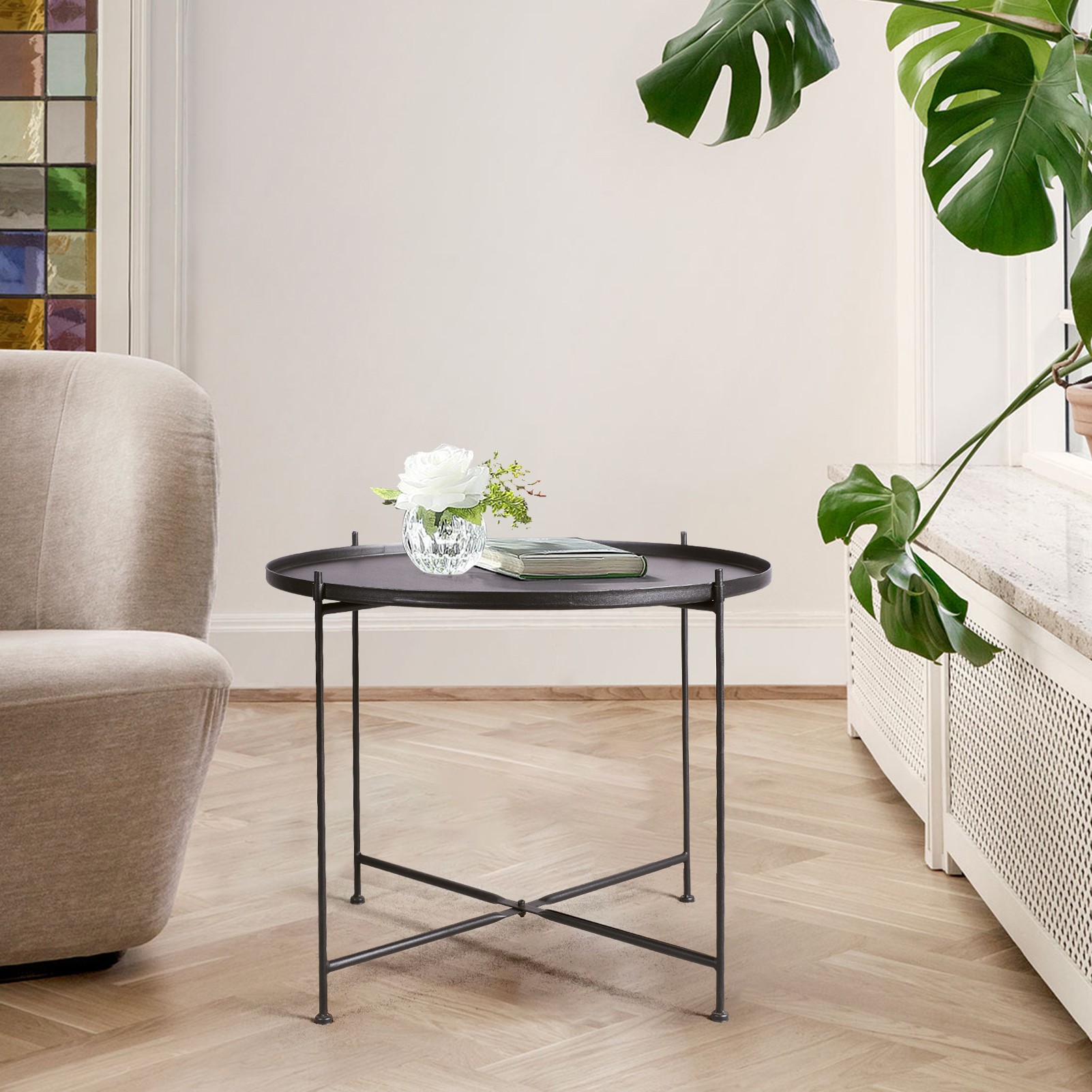 Black Round Folding Metal Side Table, Waterproof & Anti-Rust