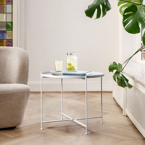 White Round Folding Metal Side Table, Waterproof & Anti-Rust