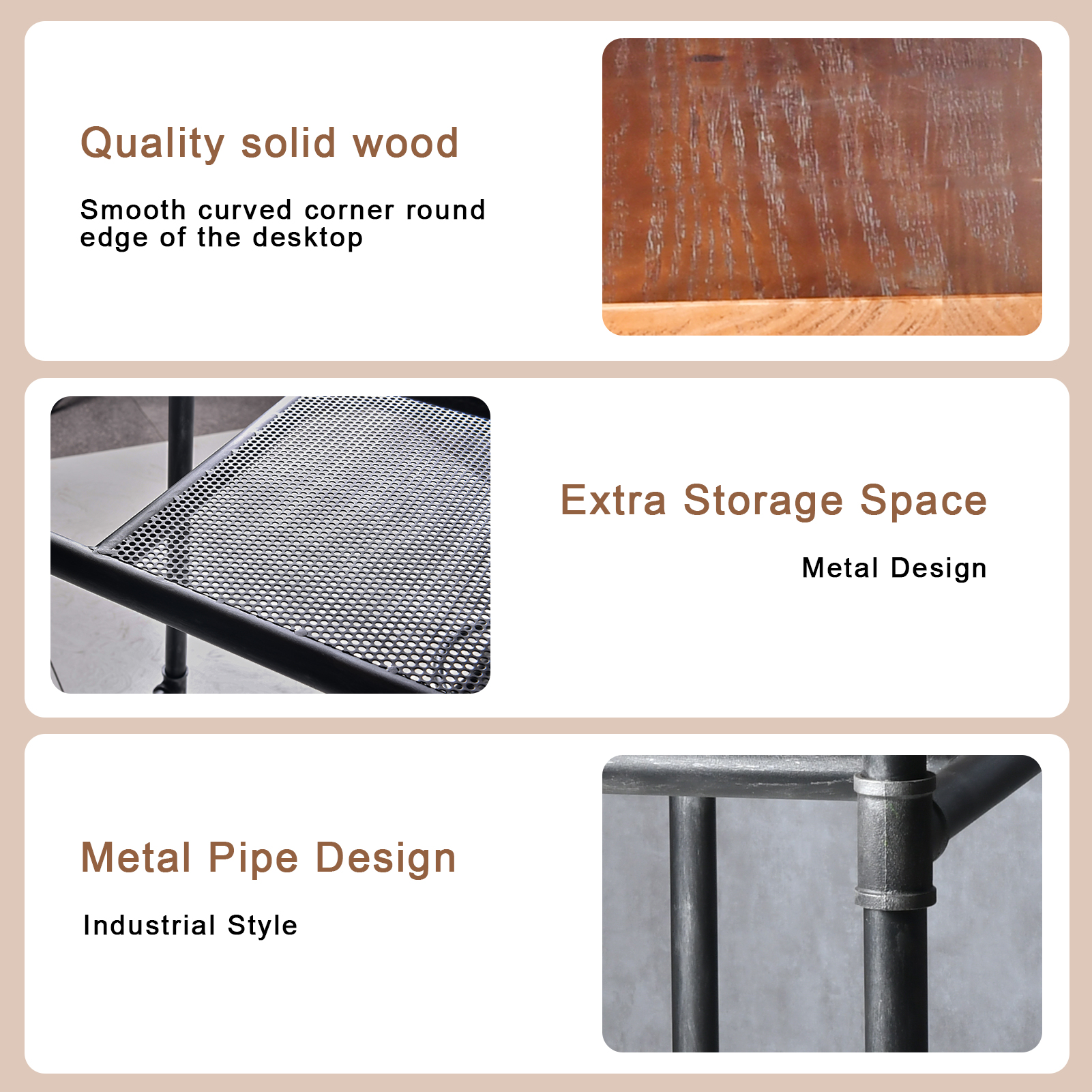 • Industrial Charm: Industrial-inspired design with a rustic brown finish for a chic, retro-modern look.